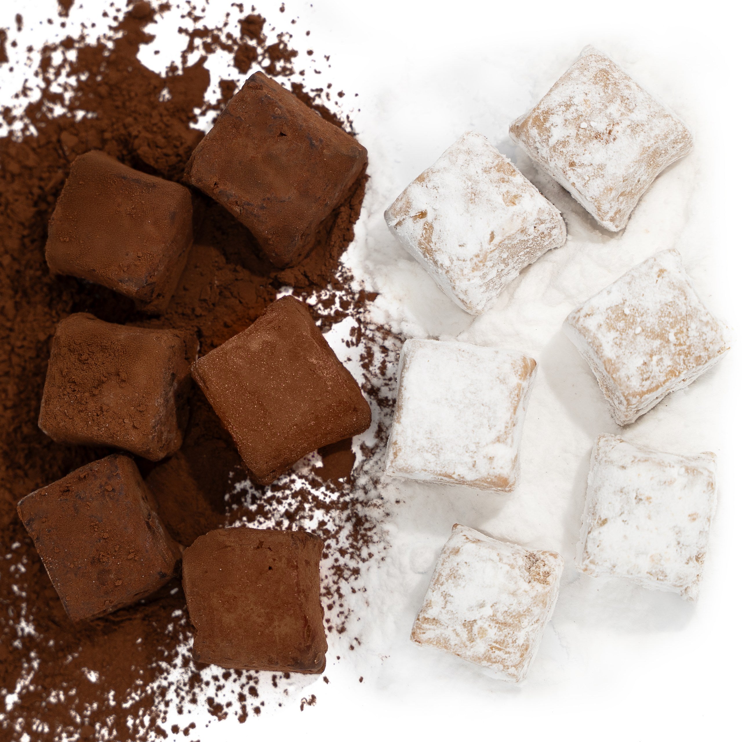 Czekoladki Truflowe z białej czekolady oraz Czekoladki Truflowe z ciemnej czekolady TARTUFO BIANCO oraz TARTUFO SCURO powstają w rodzinnej manufakturze w Piemoncie, gdzie tradycyjne receptury łączą się z nowoczesną kontrolą jakości. Każda pralina to ręcznie odmierzona porcja czekolady o wysokiej zawartości kakao, wzbogacona orzechami laskowymi, które prażone są dopiero przed produkcją, aby zachować jak najwięcej orzechowego smaku i aromatu.